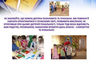 •піклуємось про розвиток тіла і розуму діяльність, навчаємо дітей добра і