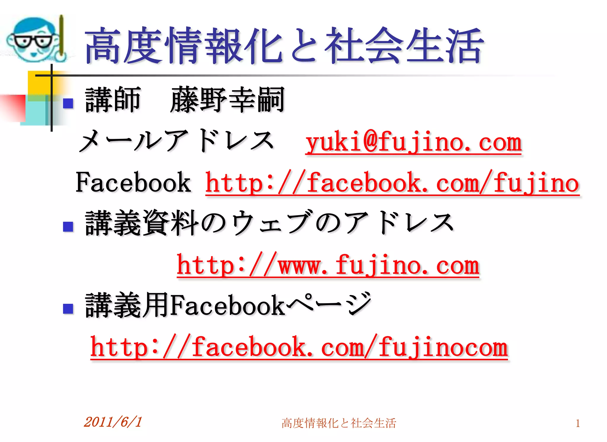 2011/6/1 高度情報化と社会生活 1