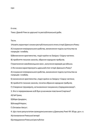 2.Якіознакихарактеризують царський етап історії Давнього Риму?