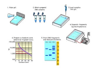 เจลอิเล็กโทรฟอริซิส (gel electrophoresis) ซึ่งแยกโมเลกุลของ DNA ที่มีขนาด