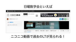 数学好きな人がお酒片手に好きな数学を語り合う会「日曜数学会」において、どんな人がどれだけ召喚(言及)されたかをカウントしてみました。日曜数学会のLTは気軽に観れてだいぶおもしろいので、ぜひみなさんニコニコ動画でみてください。https://www.nicovideo.jp/series/44300