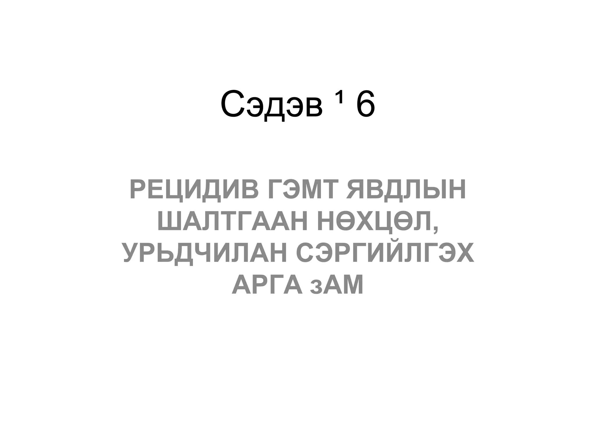 • Рецидив гэмт явдлаас урьдчилан