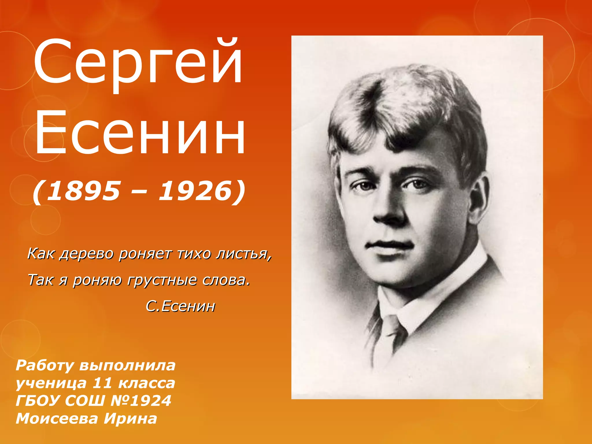 Документ содержит биографию великого русского поэта Сергея Есенина, родившегося в 1895 году в селе Константиново. Он описывает важные моменты его жизни, включая семью, образование и отношения с женщинами, среди которых были известные личности, такие как Айседора Дункан. Также документ акцентирует внимание на его поэтической карьере и влиянии, которое он оказал на русскую литературу.