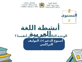 تتناول الوثيقة استراتيجيات التعلم والتفاعل في مادة اللغة العربية خلال الأسبوع السادس، حيث تركز على أنشطة التعبير عن الذات والثقافة. تتضمن خطة الدروس استخدام تقنيات متعددة مثل الاستماع والتحدث والقراءة، مع مراجعة المفردات واللغويات. تسعى الوثيقة إلى تنمية مهارات المتعلمين وضمان فهمهم للمحتوى.
