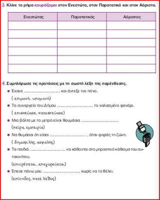 μπαίνουν στο γ΄ ενικό ή πληθυντικό πρόσωπο)