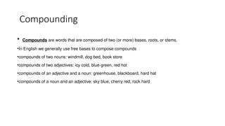 • Compounds arewords that are composed of two (or more) bases, roots, or stems.