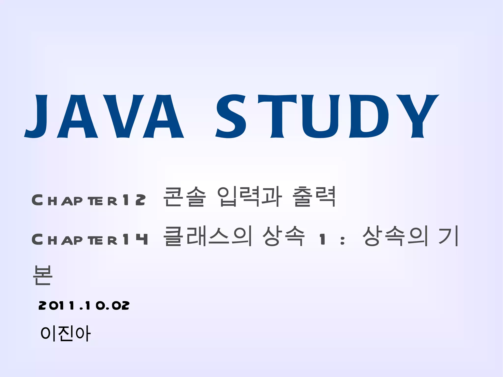 상속과 생성자 classMyName { private String name; public MyName(String name){this.name = name;} public void tellMyName() {System.out.println(“ 내 이름은 “ +name);} } class Introduce extends MyName { private String favorite; // 취미 public Introduce(String name, String favorite) { super(name); this.favorite = favorite;} public void tell MyInfo(){System.out.println(“ 내 취미는 “ +favorite);} } class BasicCrt{ public static void main(String[] args){ Introduce intro = new Introduce(“ 이진아” , “ 영화감상” ); intro.tellMyName(); intor.tellMyInfo(); } 1. 인스턴스 생성 4.Introduce 생성자 실행 3.MyName 생성자 호출 및 실행 2.Introduce 생성자 호출