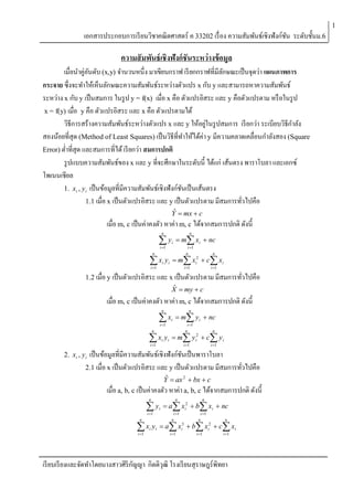 1. xi , y i เป็ นข้อมูลที่มีความสัมพันธ์เชิงฟังก์ชนเป็ นเส้นตรง