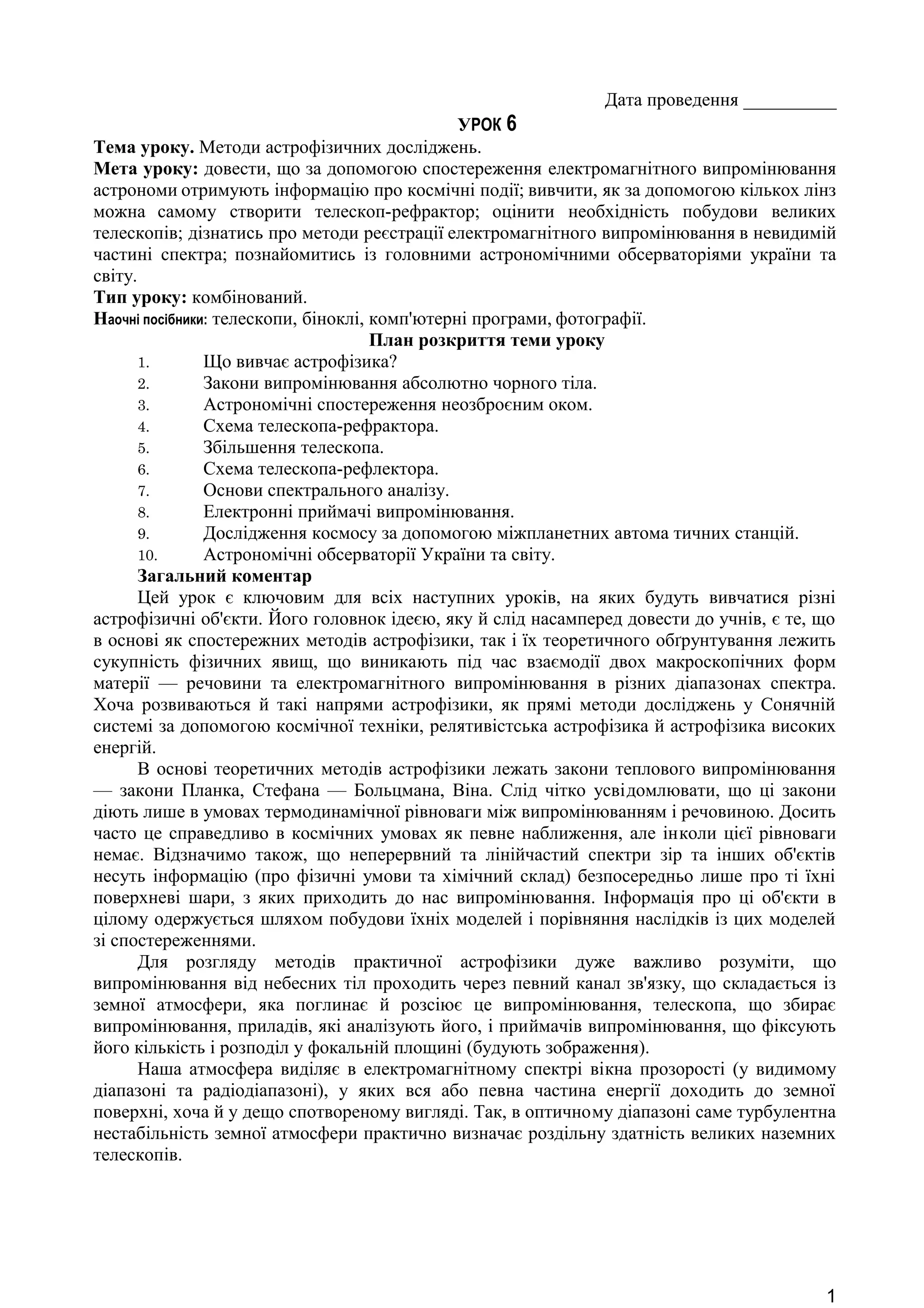 астрофізичні об'єкти. Його головнок ідеєю, яку й слід насамперед довести до учнів, є те, що