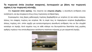 Τα πυρηνικά όπλα(nuclear weapons), λειτουργούν με βάση την πυρηνική