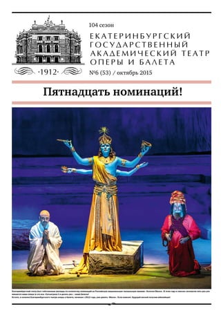 Екатеринбургский театр оперы и балета достиг рекорда по количеству номинаций на театральную премию "Золотая маска", получив 15 номинаций за свои произведения. В 2015 году театр запустил благотворительный проект, позволяющий зрителям поддерживать различных артистов, включая балерин, которые нуждаются в высококачественной обуви для репетиций. Также запланированы гастроли в Германию и Санкт-Петербург, что позволит театру продемонстрировать свои достижения на международной арене.
