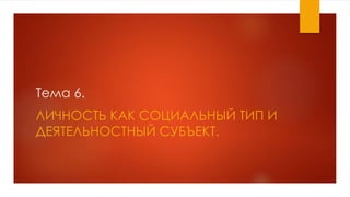 Документ рассматривает личность как социальный тип и деятельностный субъект, акцентируя внимание на взаимодействии личности с обществом и социальными институтами. Он различает понятия 'индивид', 'личность' и 'индивидуальность', подчеркивая роль социальных статусов и ролей в жизни человека. Социализация личности рассматривается как сложный процесс, зависящий от множества факторов и отсутствия единой модели для объяснения духовного мира каждого человека.