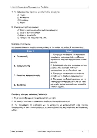 7. Ο εντοπισμός των συντακτικών λαθών σε ένα πρόγραμμα γίνεται από τον μεταγλωττιστή