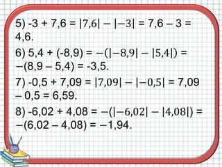 +3 + (+4) + = (|+3| + |+4|) = (3 + 4) = 7.