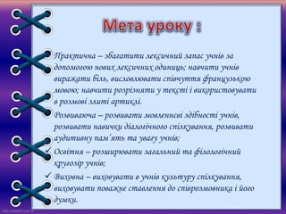 мовою; навчити розрізняти у тексті і використовувати