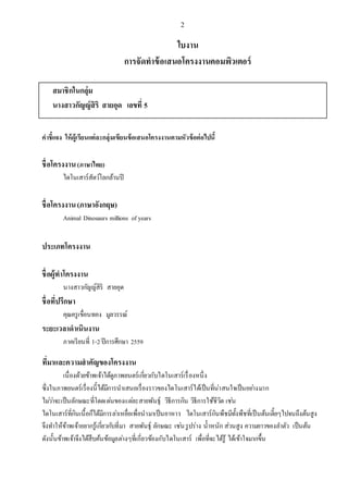 ชื่อโครงงาน ไดโนเสาร์สัตว์โลกล้านปี