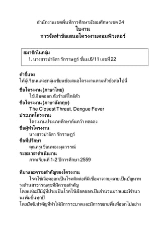 ใบงานที่ 5 โครงงานคอมพิวเตอร์ เรื่อง ไข้เลือดออก DOCX