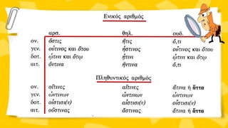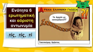 ερωτηματικής και της αόριστης αντωνυμίας:
