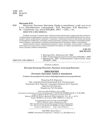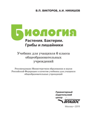 Учебник по биологии для 6 класса, написанный Викторовым и Никишовым, охватывает строение и жизнедеятельность цветковых растений, а также рассматривает бактерии и грибы. Он соответствует требованиям министерства образования и содержит необходимую информацию для подготовки к экзаменам. Учебное пособие включает задания и вопросы для проверки усвоенных знаний.