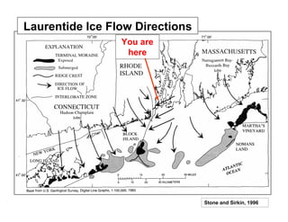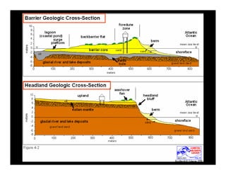 The document discusses the impacts of climate change on sea-level rise and coastal geological hazards in Rhode Island, focusing on the analysis of glacial deposits and projected future scenarios. It presents data on geological shore zone types, predicted tidal heights, and the accelerating rates of global sea level rise linked to temperature increases. Additionally, it emphasizes the need for understanding these changes to prepare for future environmental challenges in coastal areas.