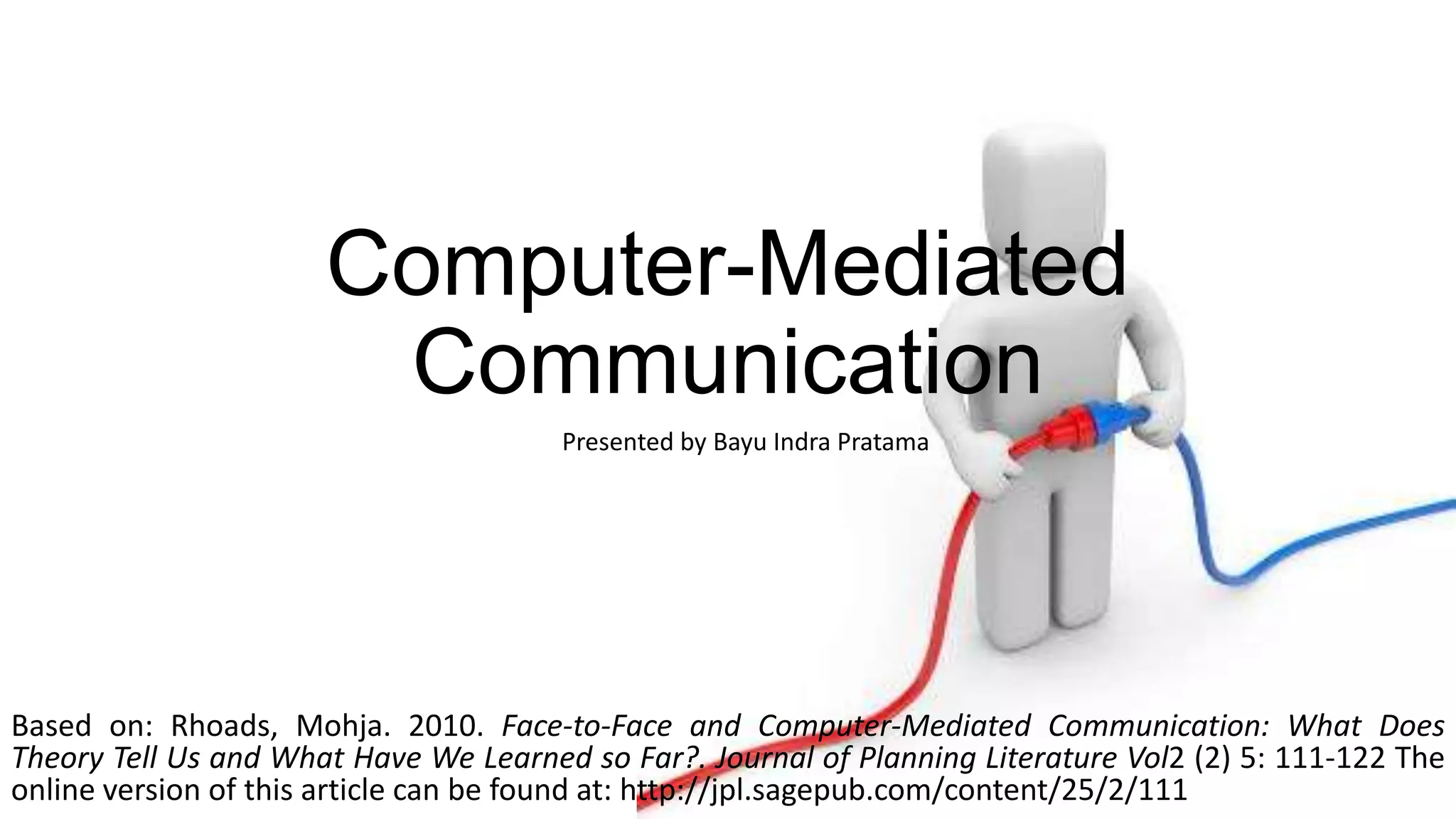 1. The document discusses theories around computer-mediated communication (CMC) and how it compares to face-to-face communication. CMC has advantages like reducing status hierarchies but lacks nonverbal cues.