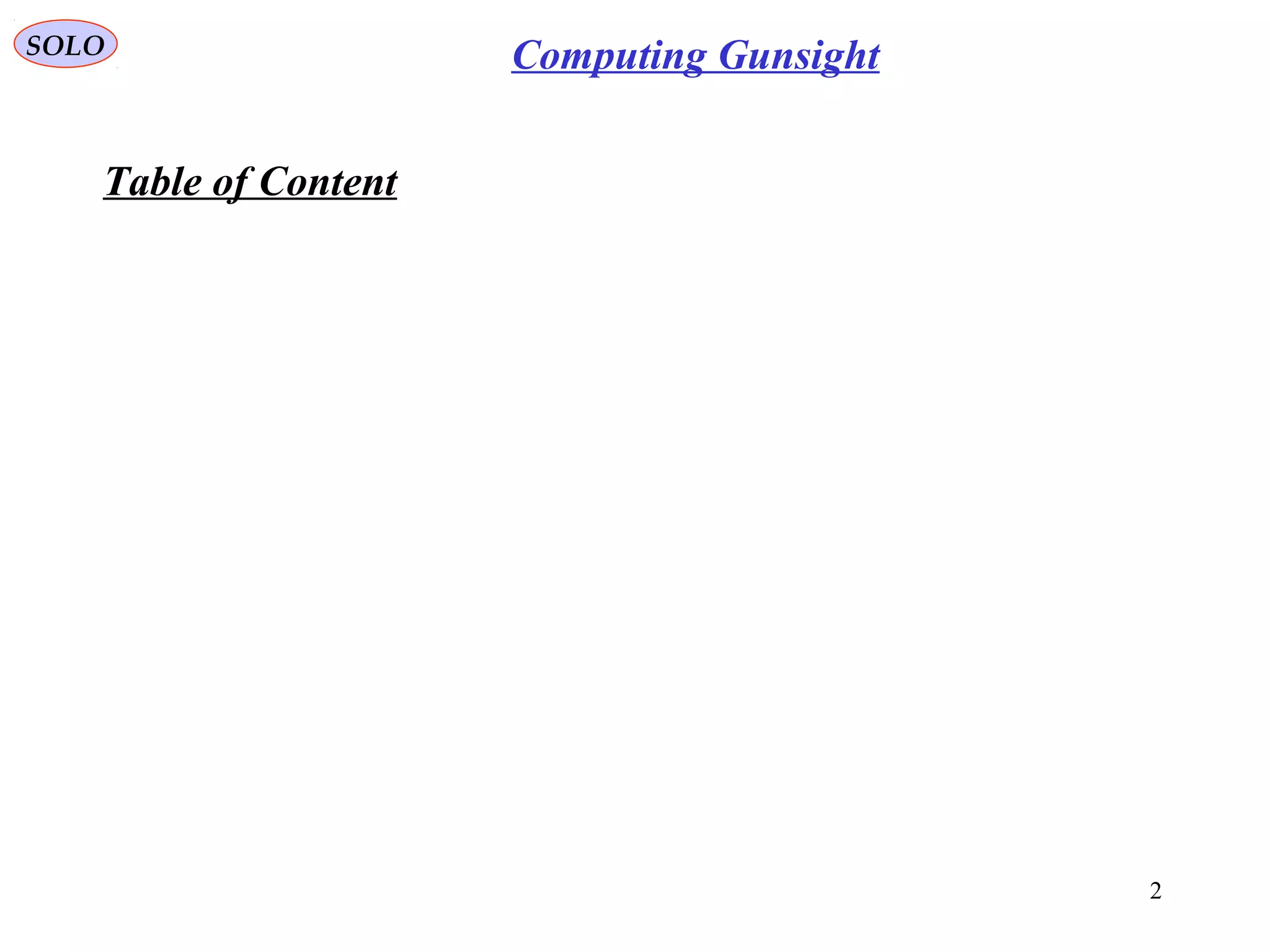 The document summarizes the history and development of gyro gunsights used in aircraft from World War 2 through the Cold War. Gyro gunsights automatically calculated the lead angle and bullet drop needed for a pilot to hit a moving target. The first operational gyro gunsight was the British Mark I in 1941. Improved models like the Mark II saw widespread use through the end of WWII. Germany developed the EZ 42 gyro sight but it did not see full deployment. The US developed the AN/ASG-26 for the F-4 Phantom, which provided targeting information via a head-up display.