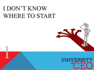 The document lists common excuses that business owners use to avoid using LinkedIn, including that they don't know where to start, think it will take too much time, don't understand it, think they are doing alright without it, believe none of their clients are on it, and see it only as a chat room rather than a way to find prospects.