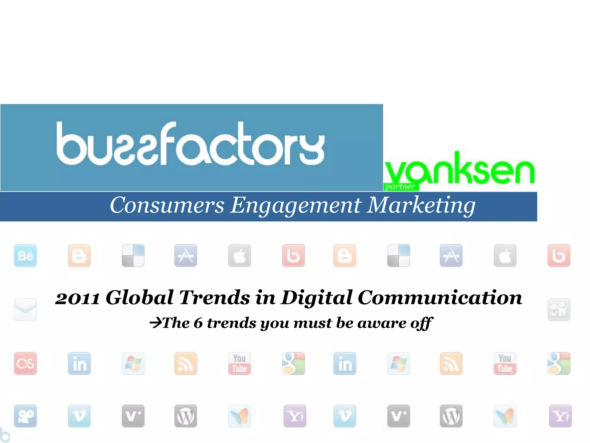 The document outlines six key trends in digital communication for 2011, emphasizing the importance of engaging consumers rather than merely reaching them. It highlights misconceptions about online marketing, such as the ineffectiveness of traditional metrics, the necessity for interesting content to drive engagement, and the impact of senior internet users. Lastly, it stresses the need for real-time communication and proper management of brand reputation on social media.