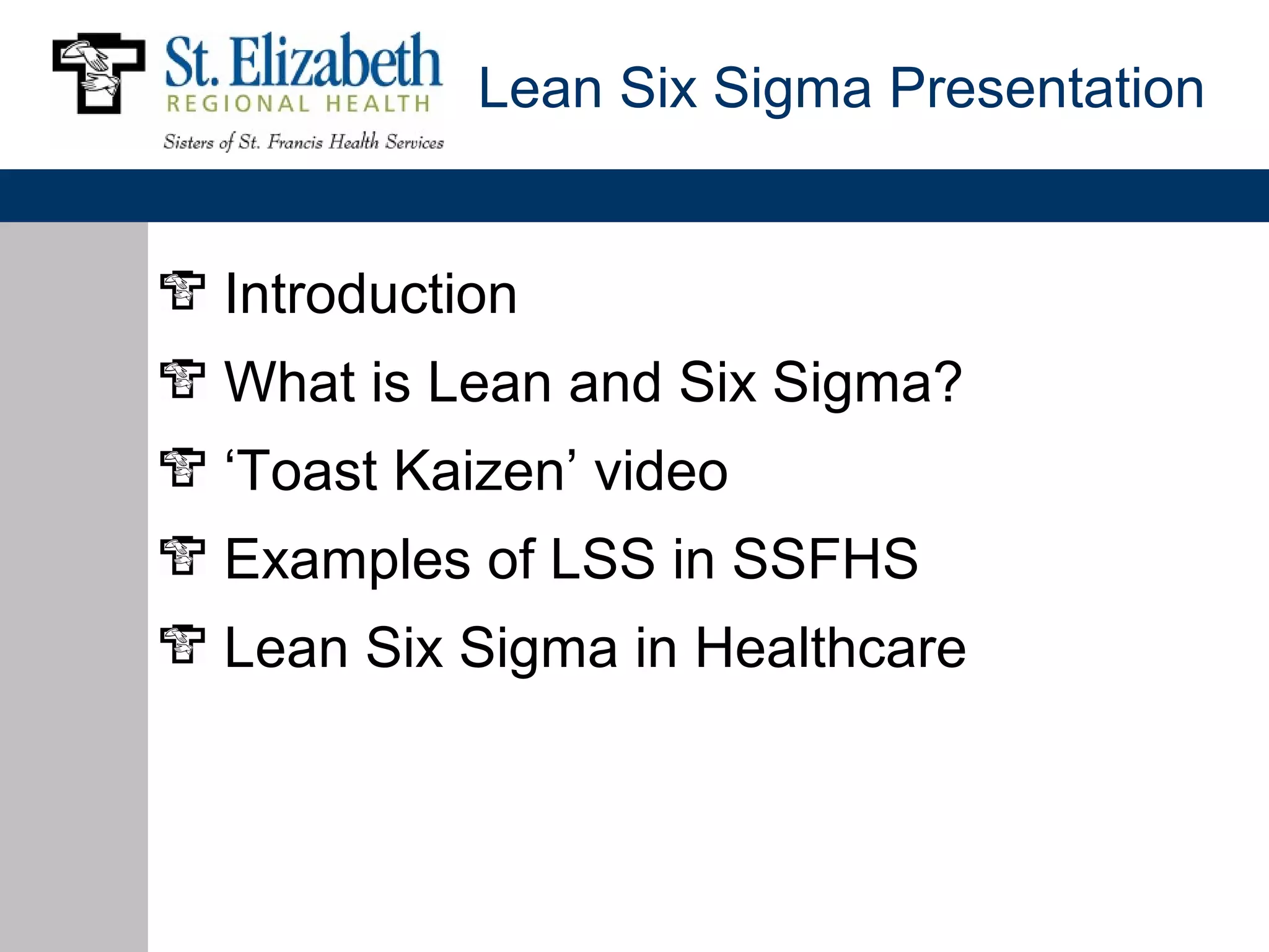 This document provides an overview of Lean Six Sigma and its application in healthcare. It discusses Lean Six Sigma concepts like eliminating waste, enhancing value-added operations, and reducing process variation. Examples of Lean Six Sigma projects at St. Elizabeth Regional Health are presented, focusing on improving patient outcomes, safety, and throughput while controlling costs. Common Lean and Six Sigma tools are outlined, such as process mapping and statistical process control. The benefits of Six Sigma level performance for reducing errors and defects are also reviewed.