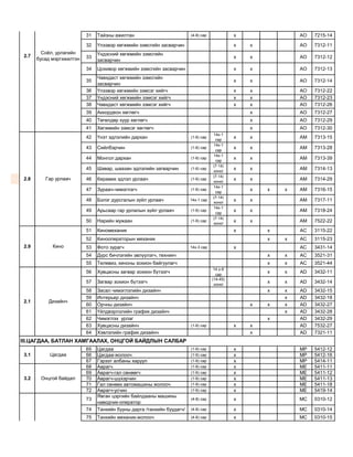 Мэргэжлийн боловсрол, сургалтын байгууллагаар бэлтгэх мэргэжлийн чиглэл, индекс
