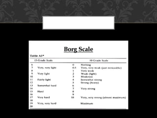 The document outlines the 6-minute walk test (6MWT), a simple and practical method for assessing functional exercise capacity, particularly in patients with chronic lung and heart diseases. It details the test's protocol, indications, limitations, and safety measures, emphasizing its role as a predictor of morbidity and mortality. The test is well-tolerated and reflects daily activity levels, making it a valuable tool for evaluating patients' functional status and responses to medical interventions.