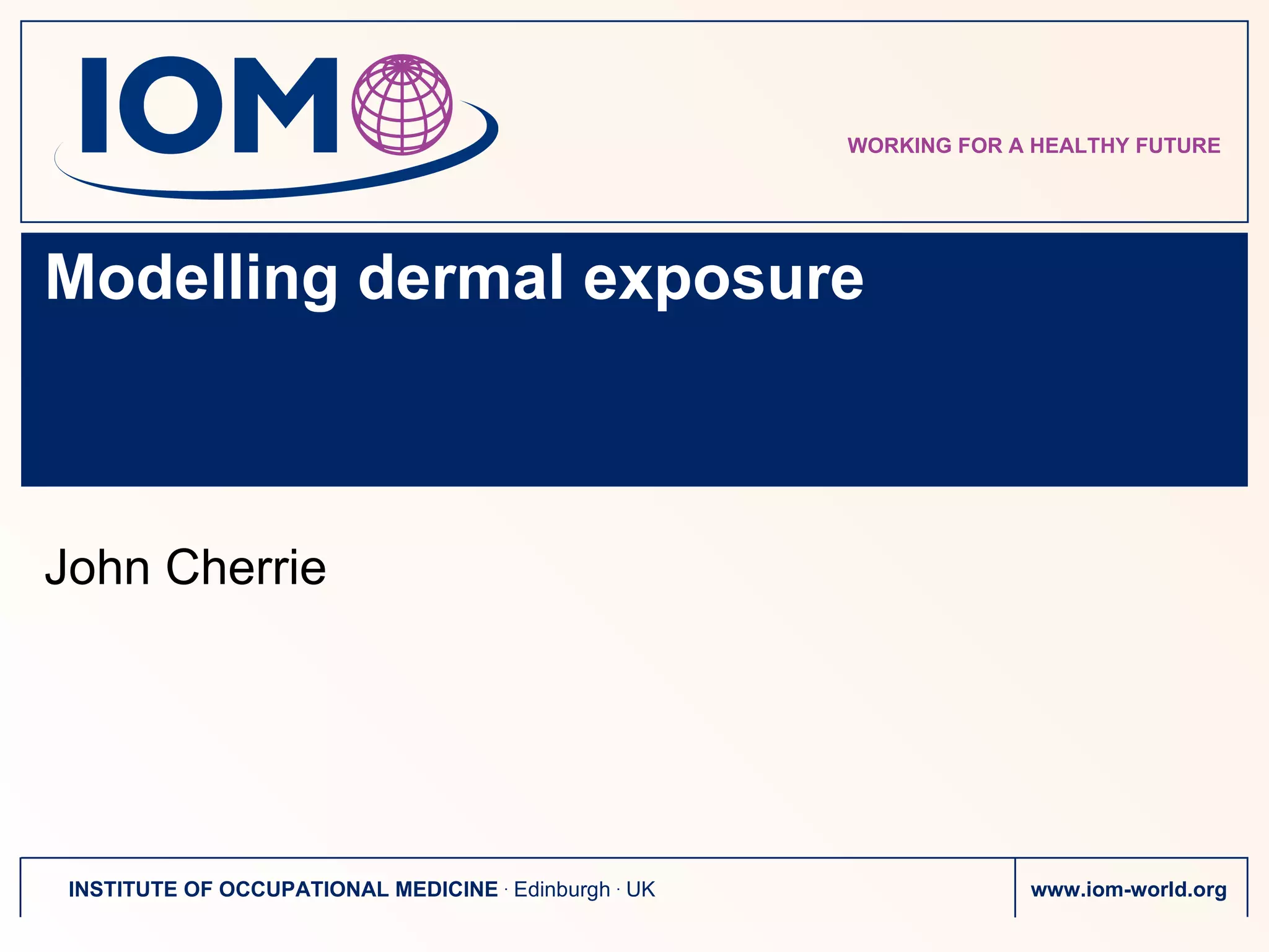 1) The document discusses modelling dermal (skin) exposure to chemicals and outlines some common tier 1 tools used. It also discusses the DREAM method, a semi-quantitative method for dermal exposure assessment.