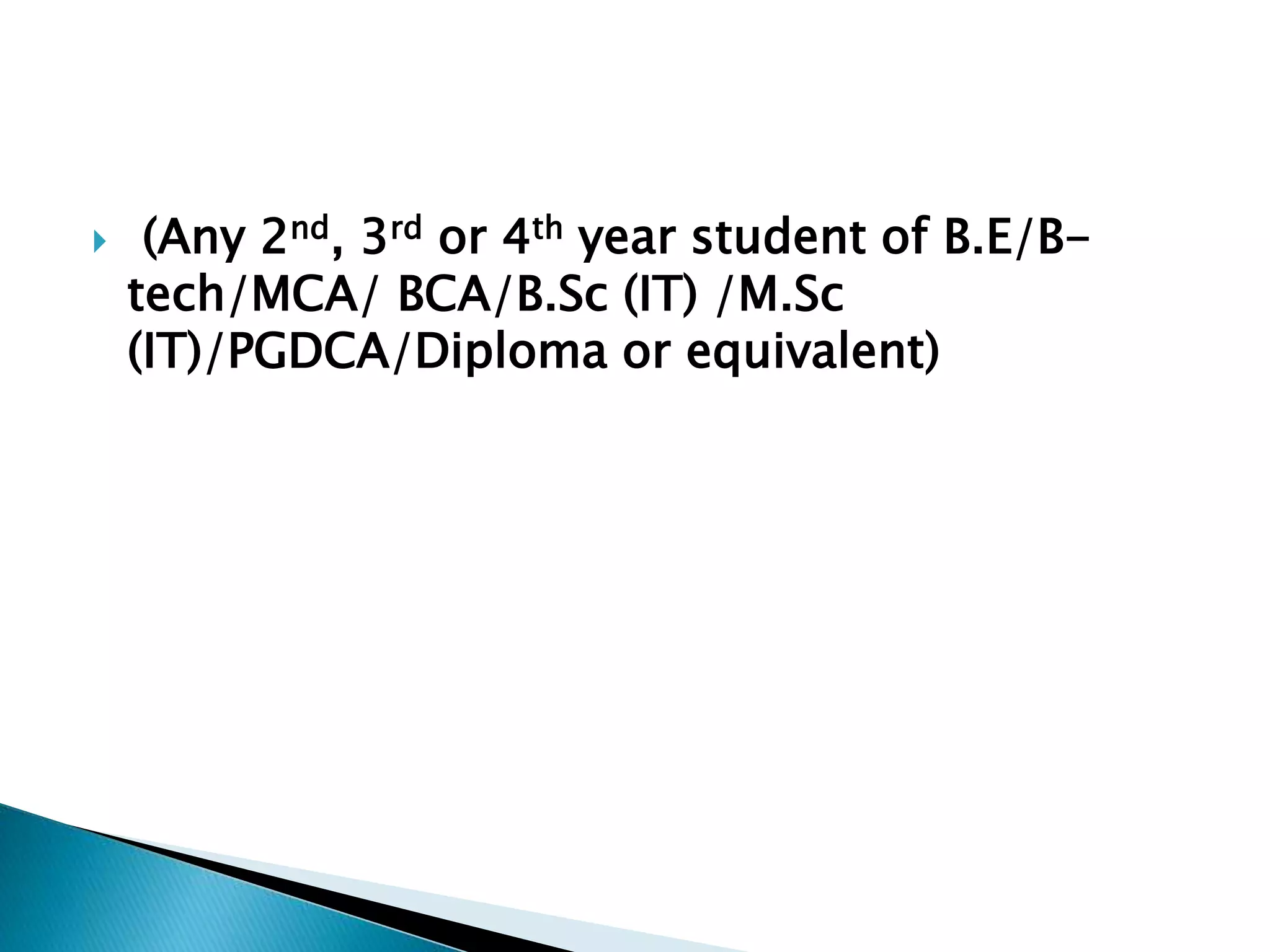 DUCC Systems invites students to participate in training programs on diverse technologies like ERP, Java, .NET, databases, and more. They offer on-campus training conducted by professionals, as well as opportunities to work on live projects, become a campus ambassador, and receive certificates and software. Students can enroll in individual courses or a 6-month MCA training program for Rs. 8,500. DUCC trains both on their premises and at colleges, helping students build teamwork and leadership skills through project-based learning.