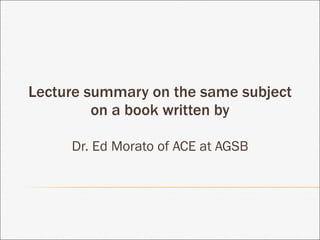 The lecture focuses on personal mastery as key to effective leadership, referencing works by Dr. Ed Morato, Peter Senge, and Daniel Goleman. It emphasizes self-awareness, the importance of critical and creative thinking, and the need for emotional intelligence in overcoming adversity and fostering a successful mindset. The session encourages continuous learning and questioning to refine one's approach both personally and professionally.