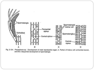 bears many unicellular and spherical spermatangia.