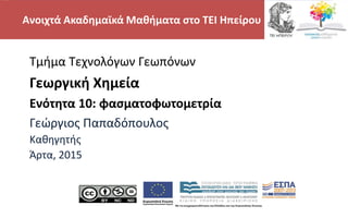 Γεωργική Χημεία, φασματοφωτομετρία,Τμήμα Τεχνολόγων γεωπόνων, ΤΕΙ ΗΠΕΙΡΟΥ - Ανοιχτά Ακαδημαϊκά Μαθήματα στο ΤΕΙ Ηπείρου