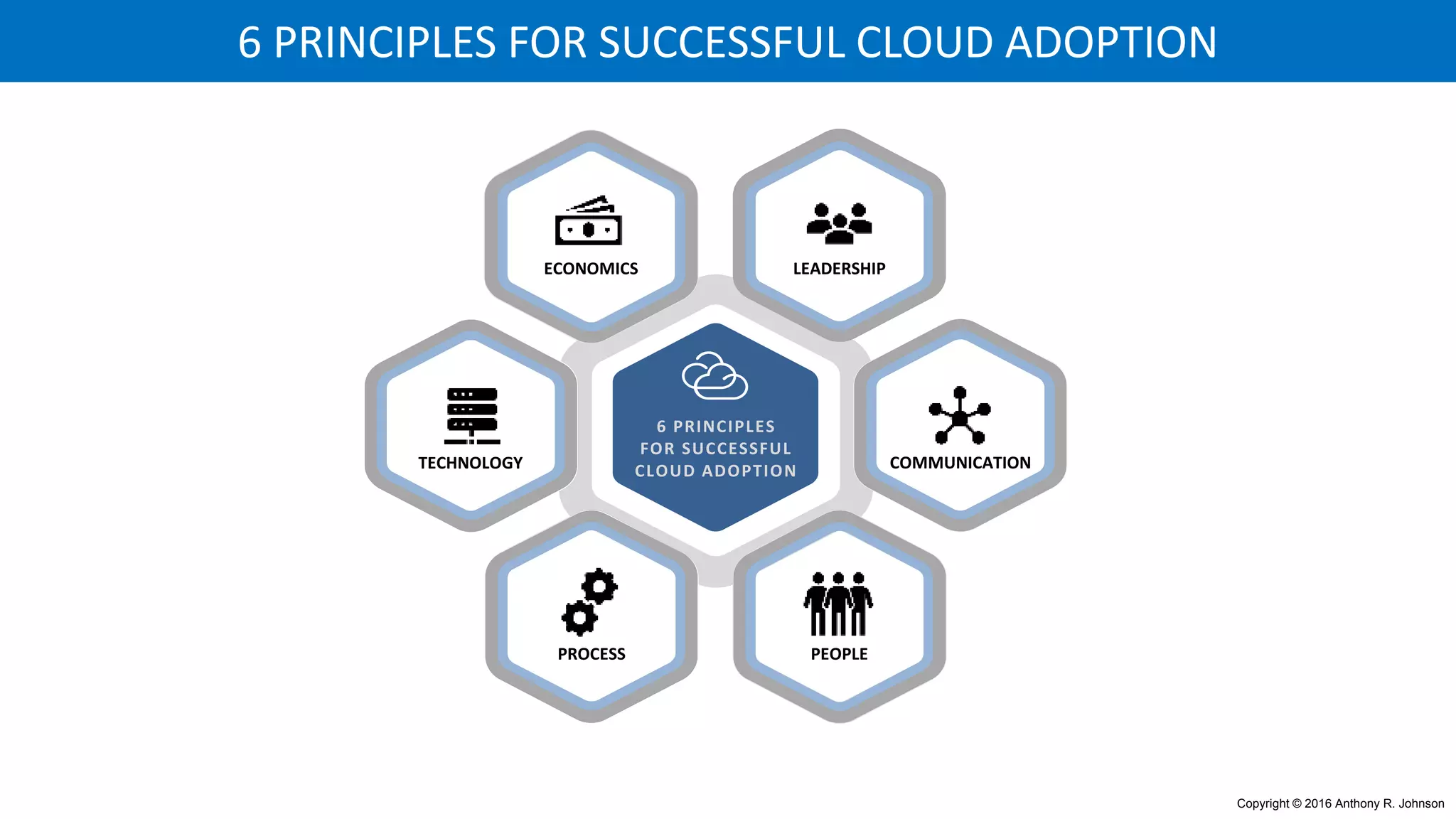 The document discusses principles for successful cloud adoption, including establishing a Chief Cloud Officer (CCO) and Cloud Business Office (CBO). The CCO focuses on building strategy based on leadership, communication, and people. The CBO manages cloud services adoption and helps control costs. Key aspects of cloud adoption discussed are governance, migration, operations, and economics optimization.