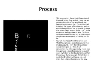 This document summarizes the process Joseph Sam Fulton took to create a final project poster. It includes: