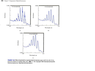 This document provides an overview of really basic optics concepts. It defines key terms like phase angle and discusses topics like atomic line widths, Doppler broadening, molecular bands, and continuum sources. It also covers the differences between coherent and incoherent radiation, how constructive and destructive interference can be used in lasers and Fourier transform instruments, and how population inversion allows for light amplification in lasers.