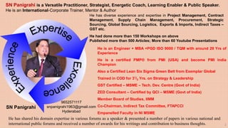 SN Panigrahi is a multifaceted professional with extensive experience in project management, supply chain, and training, having conducted over 150 workshops and authored more than 500 articles. He is certified in PMP and Lean Six Sigma, with a strong background in various strategic and leadership roles, contributing to numerous national and international forums. His problem-solving approach involves diagnosing issues, brainstorming solutions, implementing strategies, and evaluating outcomes.