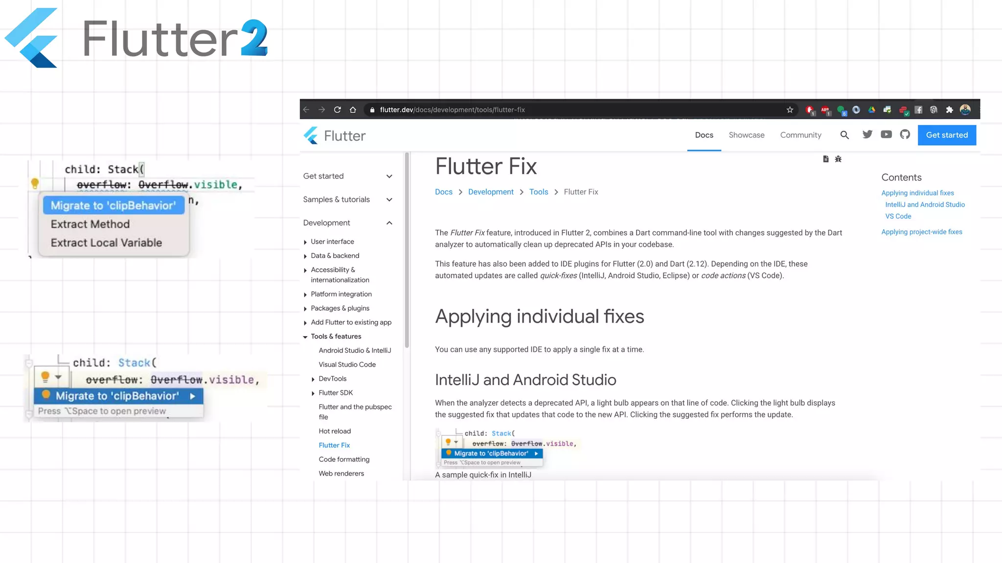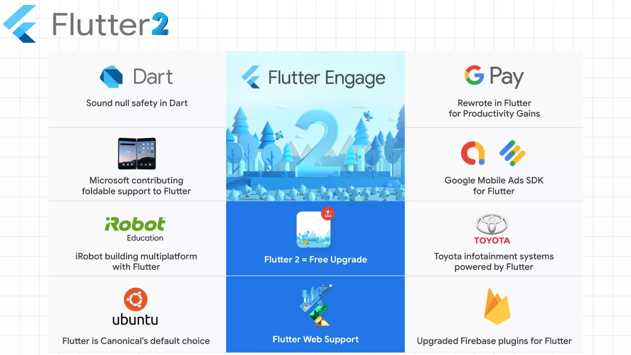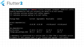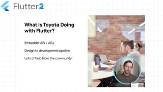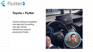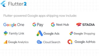 The document outlines the capabilities of Flutter, a UI toolkit developed by Google for building applications across multiple platforms from a single codebase. It highlights the introduction of support for six platforms in Flutter 2.0, including web and desktop, as well as the Dart programming language optimized for client applications. Resources and configuration instructions for setting up and optimizing Flutter for web and desktop development are also provided.