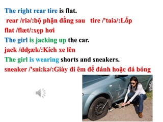 rear /riə/:bộ phận đằng sau tire /'taiə/:Lốp