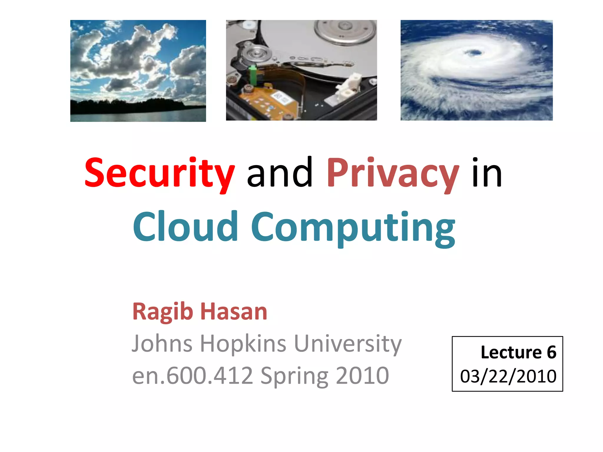 This document discusses verifying computations in cloud computing. It presents the RunTest approach, which randomly sends data along multiple processing paths and matches intermediate results to build an "attestation graph" showing node agreement. Nodes that are always inconsistent are identified as malicious. The Bron-Kerbosch algorithm finds the largest consistent clique to identify malicious nodes. The approach was evaluated on an IBM System S, detecting different attack patterns and assessing data quality. Issues discussed include the algorithm's complexity and scalability.