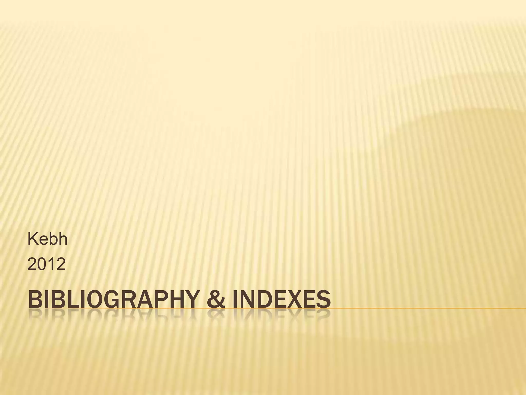 This document provides information about the differences between bibliographies and indexes. It explains that bibliographies list whole works on a topic while indexes list what is contained within a work. It then gives examples of bibliographies like subject bibliographies and general bibliographies in the Library of Congress classification. Examples of indexes include Library Literature and Information Science and Web of Science. The document also discusses citation indexes, magazines for libraries resources, and the origins of the terms "bibliography" and "index".
