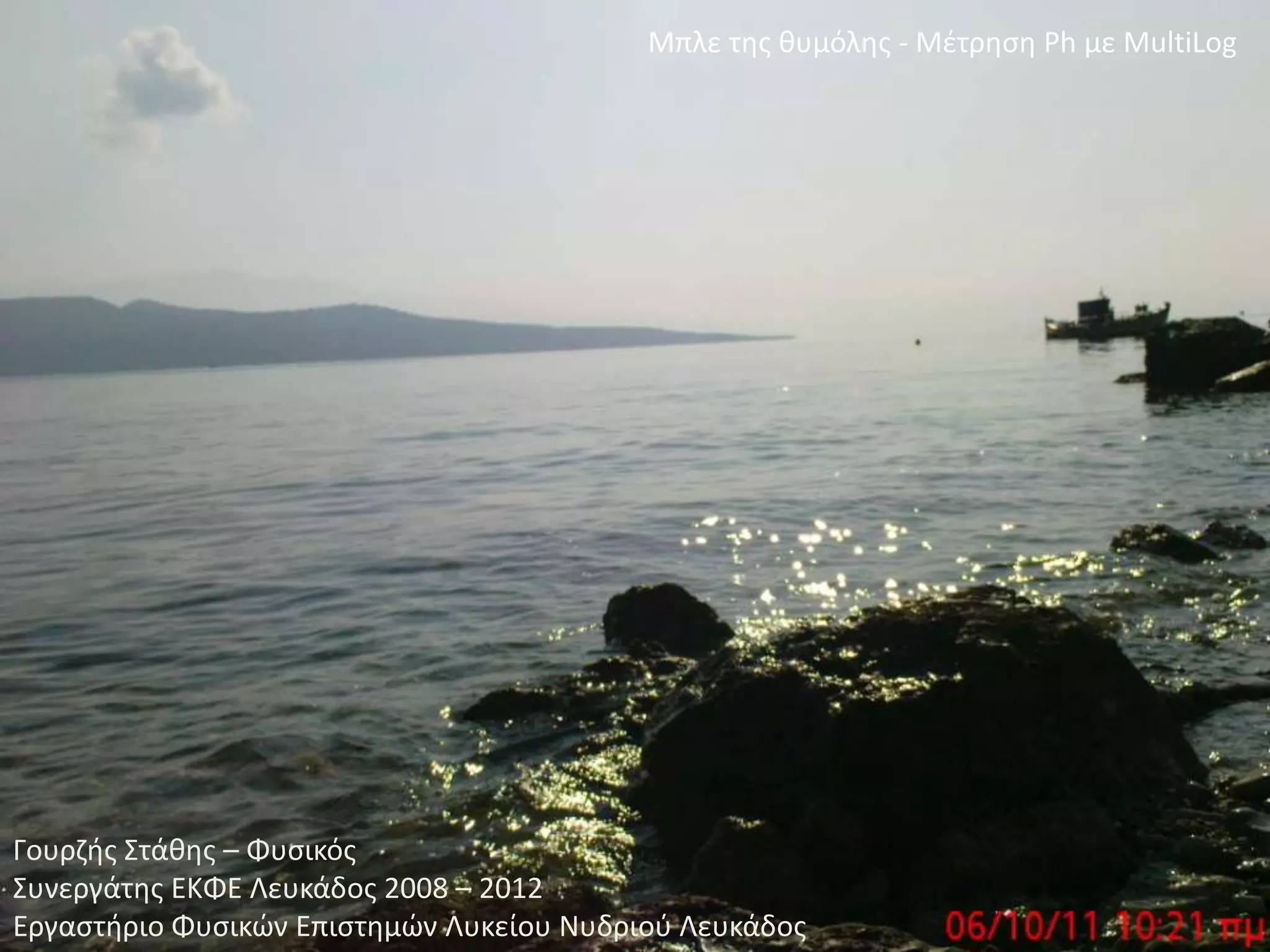 Μπλε της θυμόλης- Μέτρηση Ph με MultiLogΓουρζής Στάθης – ΦυσικόςΣυνεργάτης ΕΚΦΕ Λευκάδος2008 – 2012Εργαστήριο Φυσικών ΕπιστημώνΛυκείου Νυδριού Λευκάδος