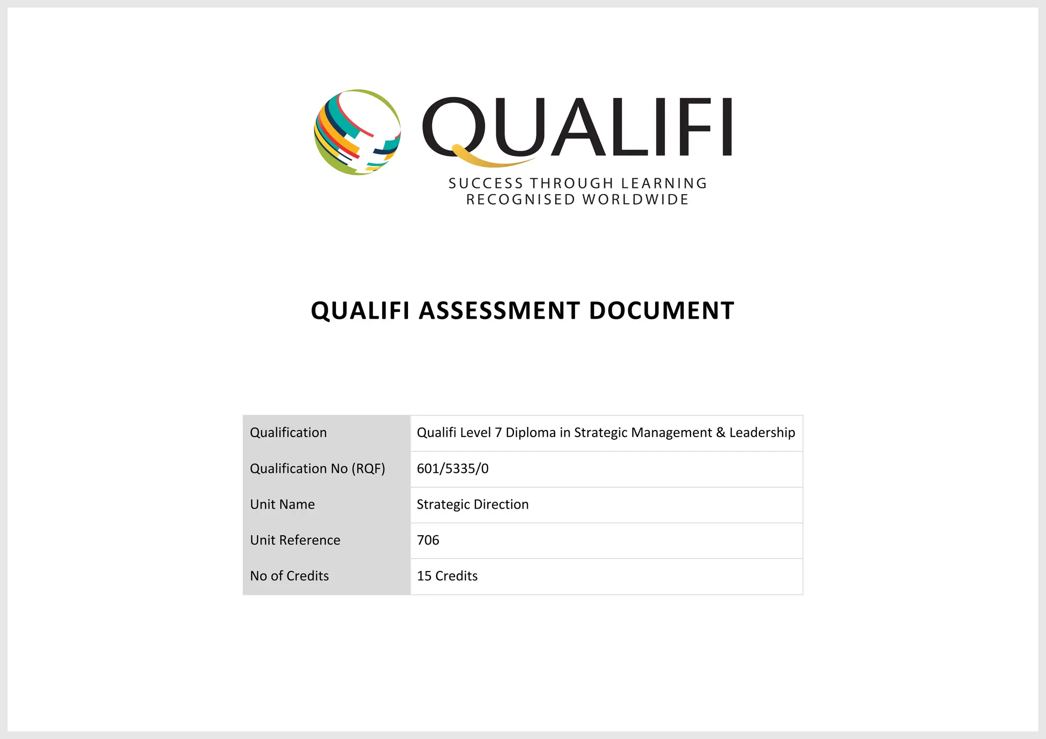 QualificationQualifi Level 7 Diploma in Strategic Management & Leadership