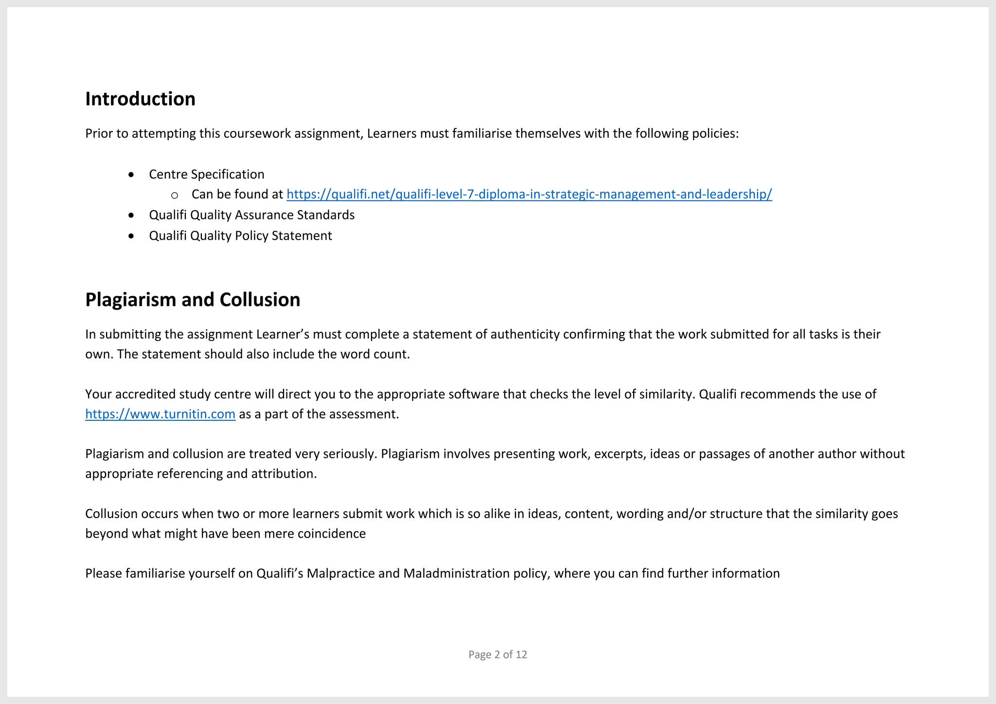 Prior to attempting this coursework assignment, Learners must familiarise themselves with the following policies: