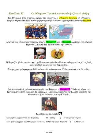 Κεφάλαιο 33Οι Οθωμανοί Τούρκοι κατακτούν βυζαντινά εδάφη