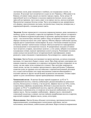 Документ представляет собой реферат о черной бузине (Sambucus nigra L.), описывающий её ботанические характеристики, ареал произрастания и использование в медицине и пищевой промышленности. Подробно рассматриваются методы заготовки цветков, их химический состав и лечебные свойства, а также способы приготовления настоев и отваров из различных частей растения. Чёрная бузина широко распространена в европейской части России и Кавказе, и её используют для устранения различных заболеваний.