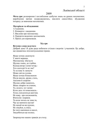 Мета гри:розширення і поглиблення здобутих знань на уроках математики;